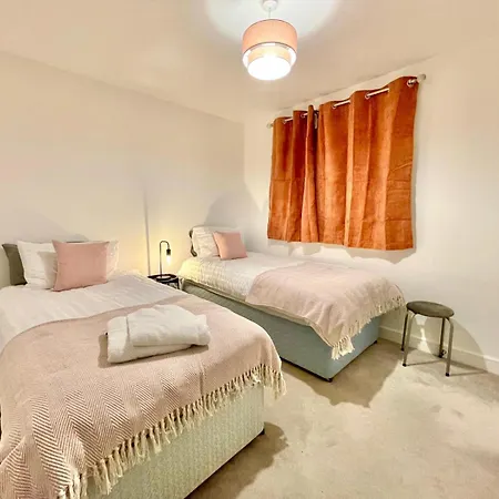 Churchill House 3 Bedroom Sleeps 6 Free Parking dairesi, Gloucester Katedrali'a 3 km mesafedeki bahçe manzarasına sahiptir. Daire 50 m^2lik olup 2 yatak odası, 2 banyo ve tam donanımlı mutfağa sahiptir.